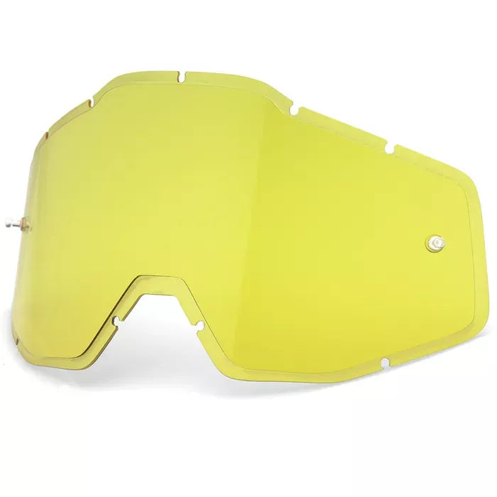 Pre-curved, injected polycarbonate shield lens. Shares the same lens shape across the 100% product line. Superior strength against impacts, Anti-fog protection