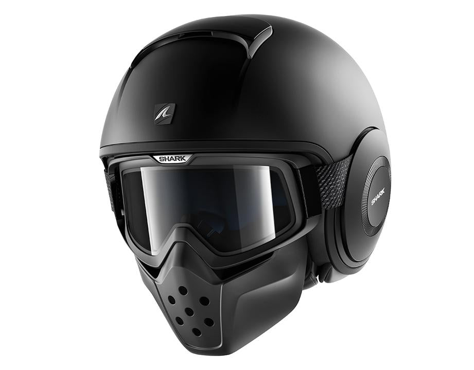 If you've always desired to be a fighter jet pilot but can only get near by riding motorbikes, the Shark Street-Drak Helmet is here to help you realize your dream. The aviator-inspired design blends a 3/4 thermoplastic shell with off-road styled goggles and a face mask to produce a helmet suited for ripping up the urban streets. Formerly known as the Shark Raw Helmet, the warmest heads stay cool thanks to the sweat-wicking lining and ventilation system, and while the plastic face mask does not provide impact protection, it helps keep external substances from hitting your face while on the go.